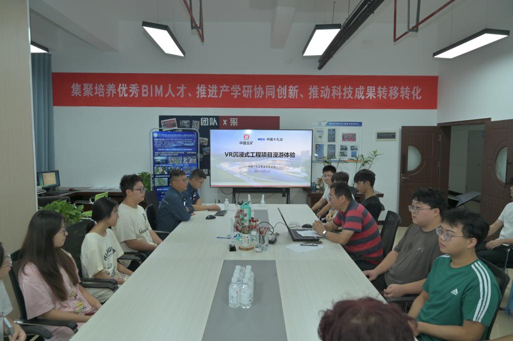 活动依托中国十九冶天星湖项目真实场景,学生分组佩戴VR头显,先后完成主体结构、边坡支护、机电安装三大工序的“1:1虚拟漫游”,并在系统预设的5类安全质量事故情景中完成隐患识别与处置演练。随后,科研团队通过BIM+GIS融合平台,向学生动态展示了工程“设计—施工—运维”全周期数据流转路径,现场指导学生调用模型数据库完成4D施工模拟,将课堂理论知识转化为可交互、可分析的数字成果。