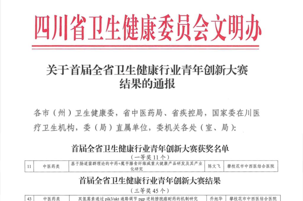 近日,四川省卫生健康委文明办公布了首届全省卫生健康行业青年创新大赛获奖名单,我校附属医院青年医务工作者陈文飞主持项目荣获一等奖、乔旭华主持项目荣获三等奖,充分展现了我校附属医院在医学研究与技术创新领域的强劲实力。