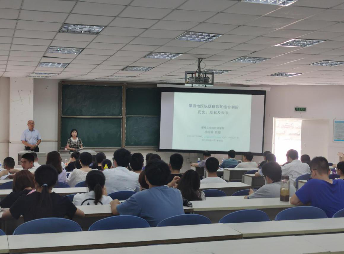 学院杨绍利教授开专题讲座,为大家讲解攀西地区钒钛磁铁矿综合利用历史、现状及未来。并回答国家开发钒钛磁铁矿资源建设攀枝花钢铁基地的初心是什么?我们这一代人的使命是什么?这两个问题,他说道,初心是国防战略需要,通过开发钒钛磁铁矿获取钢铁,提升军队战力,以应对国际不稳定局势;使命是要攻克钒钛磁铁矿资源综合利用重大关键技术,提高资源综合利用水平,特别是提高钒、钛资源回收利用水平,支撑钒钛产业创新转型高质量发展,做好钒钛这篇大文章。他希望师生们找到自己的答案,“不忘初心,牢记使命”,争做“自律攀大人”,为钒钛磁铁矿产业发展,为攀西地区发展贡献自己的力量!