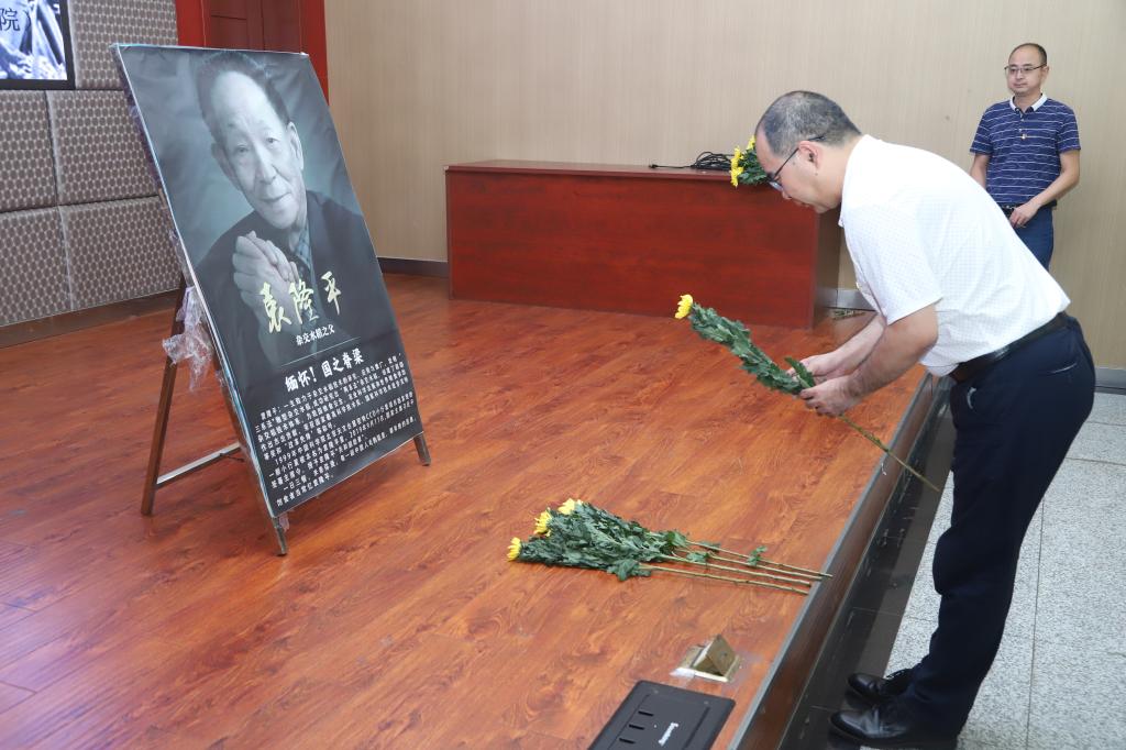 会议首先对袁隆平院士的逝世表示哀悼,师生向袁隆平院士的遗像献花致敬,并通过袁隆平院士的人生历程、青春寄语和学生感悟三个微视频展播表示对袁隆平院士的敬意和对学院学生的殷切希望。