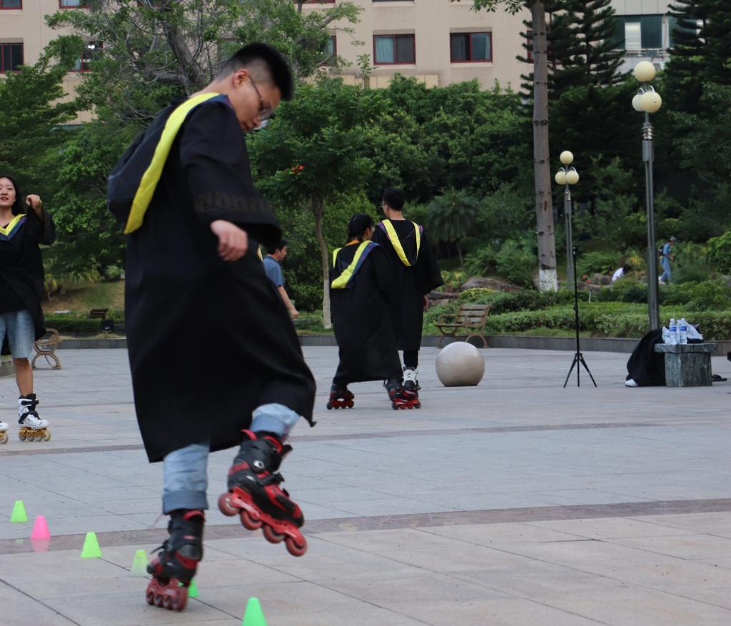 他与轮滑的相遇源自一次傍晚的校园散步,平日繁杂学业带来的困扰促使他想接触一些“新事物”来释放心中的压力可能是天赋使然,他很快便掌握了轮滑的要领,渐渐地,C教之上出现了一道靓丽的身影,轮滑鞋如同双腿的延伸,在多变的地形上如履平地。他说:“人人都应有一种深厚的兴趣或爱好,以丰富心灵,为生活添加滋味”。他选择了这项爱好,并全心全意的投入到当中,丰富了自己的生活,也增添了一丝不可多得的趣味。