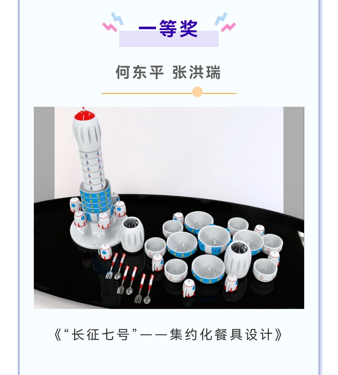 由西安航天基地管理委员会主办的“航天探索杯”文创产品设计大赛在7月8日落下帷幕。经过专家评审组的严格评选,艺术学院产品设计专业廖梅老师指导的四组同学从众多参赛者中脱颖而出,何东平、张洪瑞获大赛一等奖(仅设1名);张志刚、郭浩然获最佳创意奖;