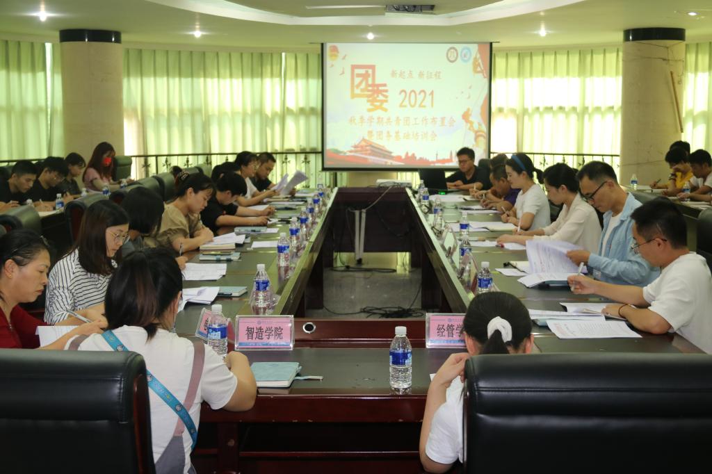 9月15日下午,团委召开2021年秋季学期共青团工作布置会暨团务基础培训会。团委全体老师、各二级学院分团委书记与学生干部代表参会。
