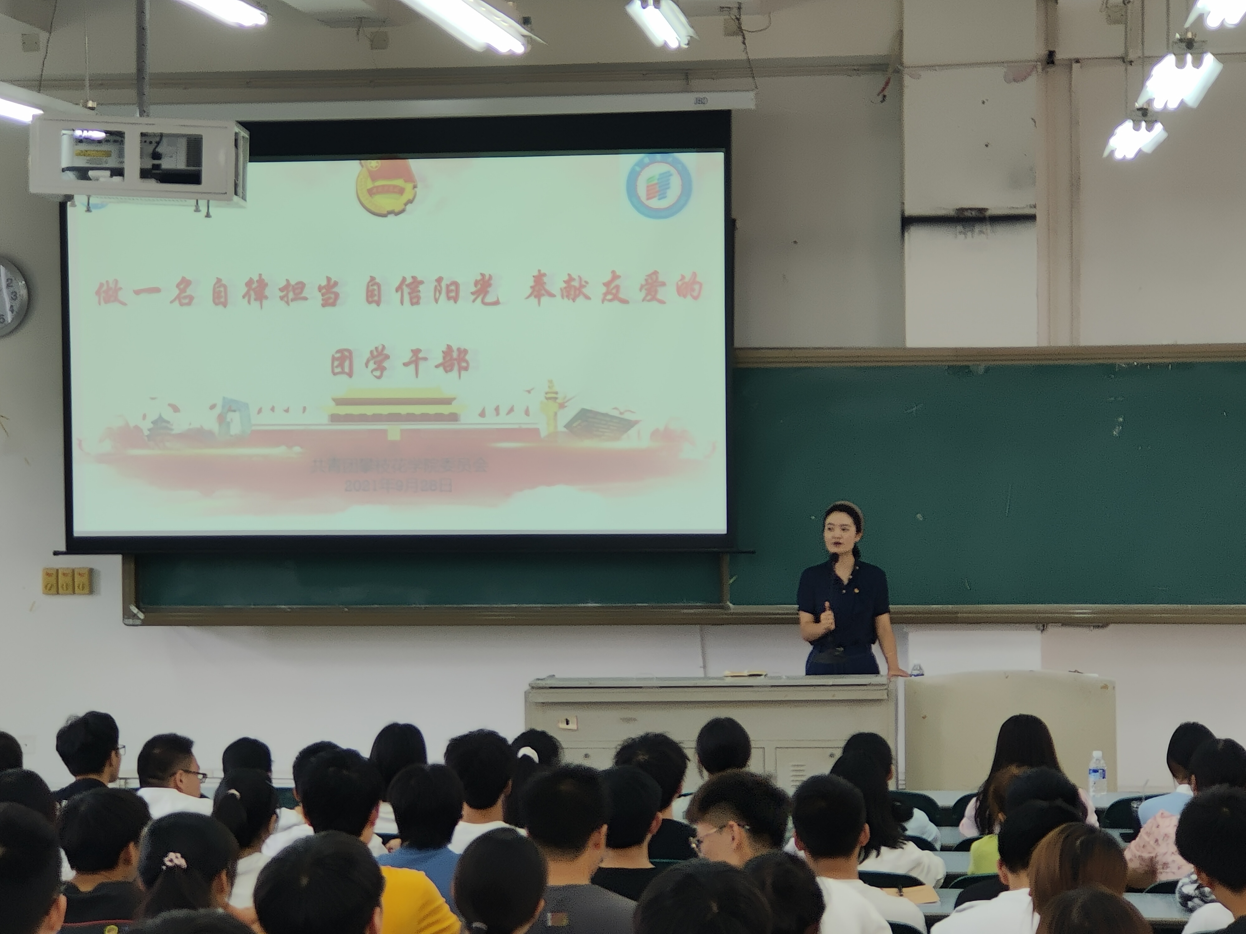 团委负责人从“我心中的团学干部”为题与大家展开讨论,介绍了历年来我校团学干部的学习工作情况,分析了团学干部中“强三性、去四化”的事件,重点强调了团学干部纪律规矩教育的重要意义。要求全体团学干部一是要树立全心全意为同学服务的意识;二是要将全心全意为同学服务的意识转化为实际行动;三是要深入学生群体,了解同学的所思所想,帮助解决同学们急难所盼的问题;四是要创新开展团学工作。她希望团学干部以勇担重任的红色、自律自信的蓝色、奉献友爱的绿色、阳光向上的黄色、干净廉洁的白色作为团学干部身份的底色,用实际行动践行团学干部自律公约,成为一名优秀的团学干部。