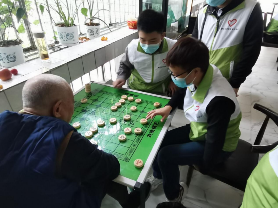 志愿者们陪伴敬老院老人们聊天、下棋、打扫卫生等志愿活动,向敬老院的老人们献上了自己的一份爱心。志愿者还展示了准备的小节目、小游戏等,丰富了老人们的生活,现场充满了大家的欢声笑语