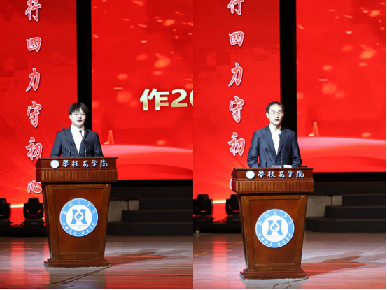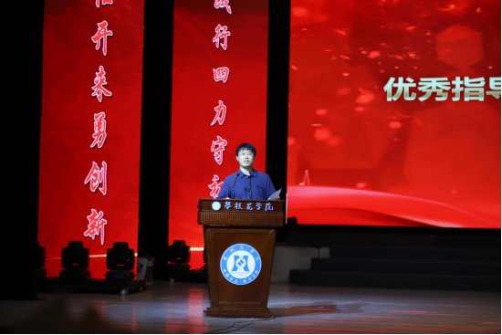 传媒中心优秀指导老师代表陈松讲话,他对每一位辛勤付出的老师和同学表示了肯定和感谢。同时,他表示传媒中心是大家展示才华,磨练意志的平台,希望每一位传媒人都能察实情、说实话、动真情;不断提高自己的脚力、眼力、脑力、笔力,砥砺前行,不负青春。