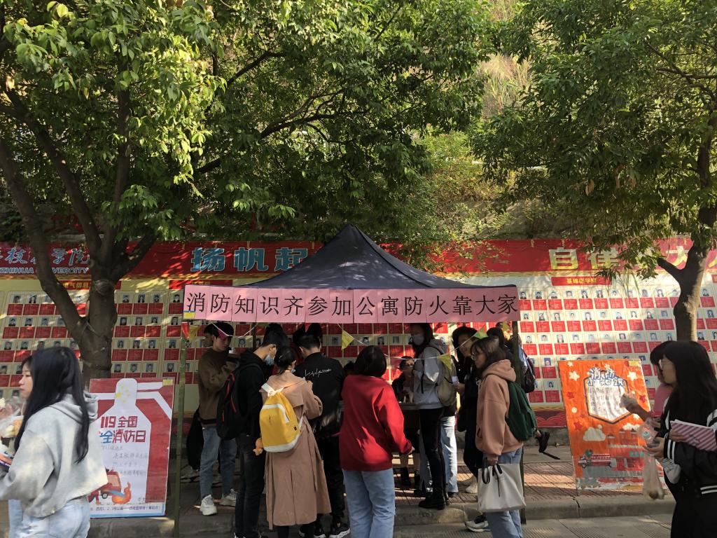 为全力打造平安校园、和谐校园,坚决遏制火灾事故的发生,进一步提高学生的消防安全意识和自救能力,学工部于11月9日在本部九号楼对面、西苑篮球场组织了消防安全知识普及周的学生宣传教育活动。