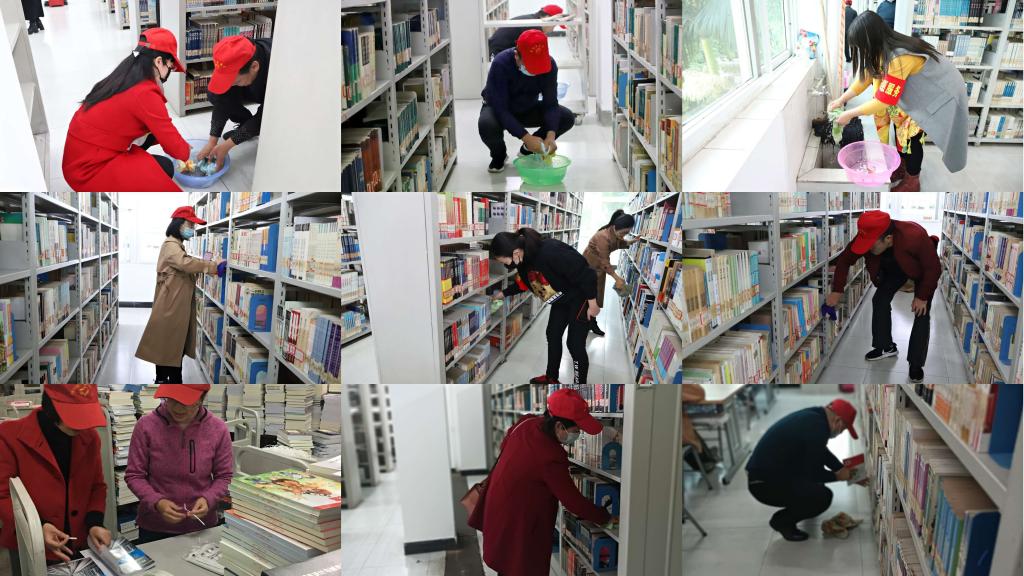 活动期间,图书馆负责人向志愿者们详细介绍了图书馆内基本情况及馆内功能区分布。志愿者们在图书馆相关人员的带领下分工合作,认真清理、擦拭书架并对部分图书进行了重新整理归纳,部分志愿者还体验了图书扫码,贴磁条等工作。在志愿者们的辛勤服务下,同学们拥有了一个干净、整洁的阅读环境。