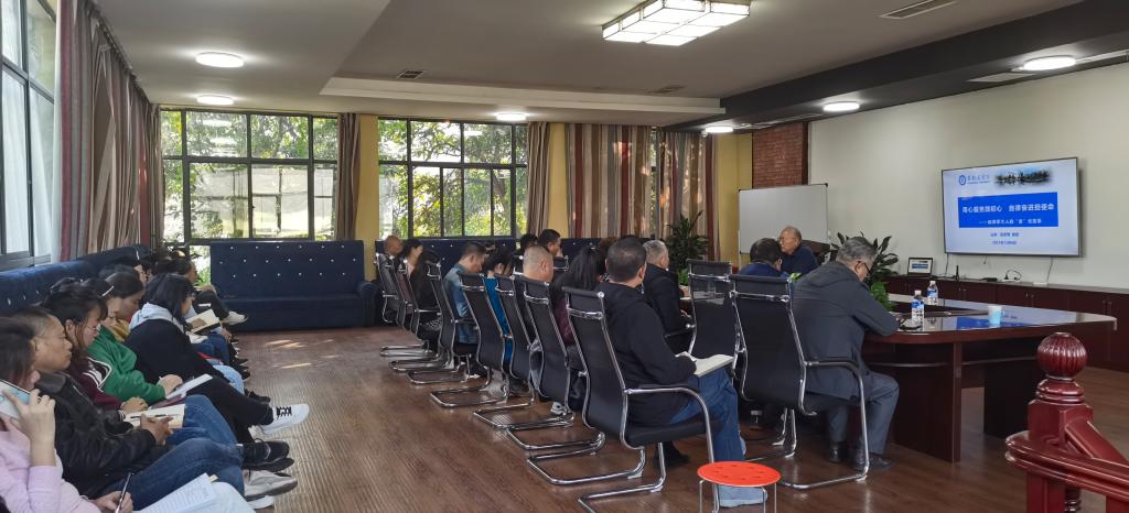 张彦博教授曾任学校副校长,分管后勤工作13年,他回顾了为什么要成立攀大、攀大的发展历程、攀大建设者的创业故事,尤其动情地讲述了攀大食堂从无到有、从小到大的艰难的“食”光故事,以及后勤人为保证师生吃上可口的饭菜不畏艰辛的奉献精神,分享了身边鲜为人知的后勤人的感人故事,对现今我校食堂建设取得的成就表示由衷的感叹和自豪。讲解过程中,他声情并茂、娓娓道来,现场全体职工无不被其生动讲述所感动。
