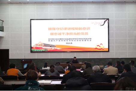 省纪委监委驻校纪检监察组副组长、校纪委副书记、纪检监察室主任刘云涛作《增强守纪律讲规矩的意识 做忠诚干净担当的党员》专题讲座。