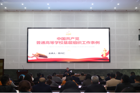 党委常委、组织部部长、党校常务副校长苏兴仁解读《中国共产党普通高等学校基层组织工作条例》。