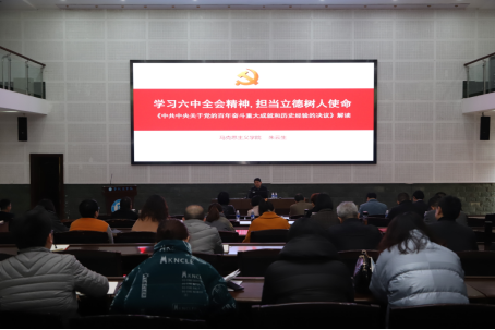 马克思主义学院院长朱云生教授作《学习六中全会精神担当立德树人使命》专题讲座。