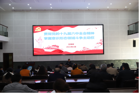党委常委、宣传部部长、党校副校长王明辉作《贯彻党的十九届六中全会精神 掌握意识形态领域斗争主动权》专题讲座。