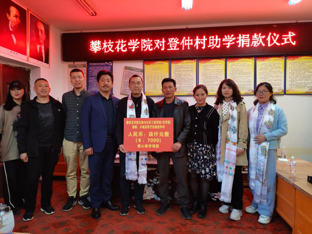 张旭辉一行代表学校,向登仲村7名困难学生捐赠了7000元助学基金,并祝愿所有乡城学生能够在“家门口”享受更高质量的教育,为乡城振兴激发更多动力源。