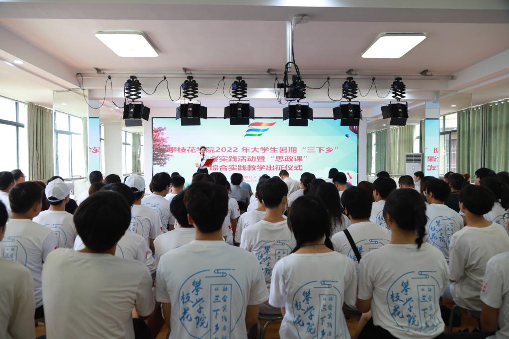 623日下午,我校自律攀大人 喜迎二十大 永远跟党走 奋进新征程”2022年大学生暑期社会实践暨思想政治理论课综合实践教学出征仪式在凌云楼举行。校党委副书记胥刚出席仪式并讲话,宣传部、教务处、学生处、保卫处和马克思主义学院负责人,二级学院学生工作负责人、分团委书记、马克思主义学院教师及实践学生代表参加仪式。