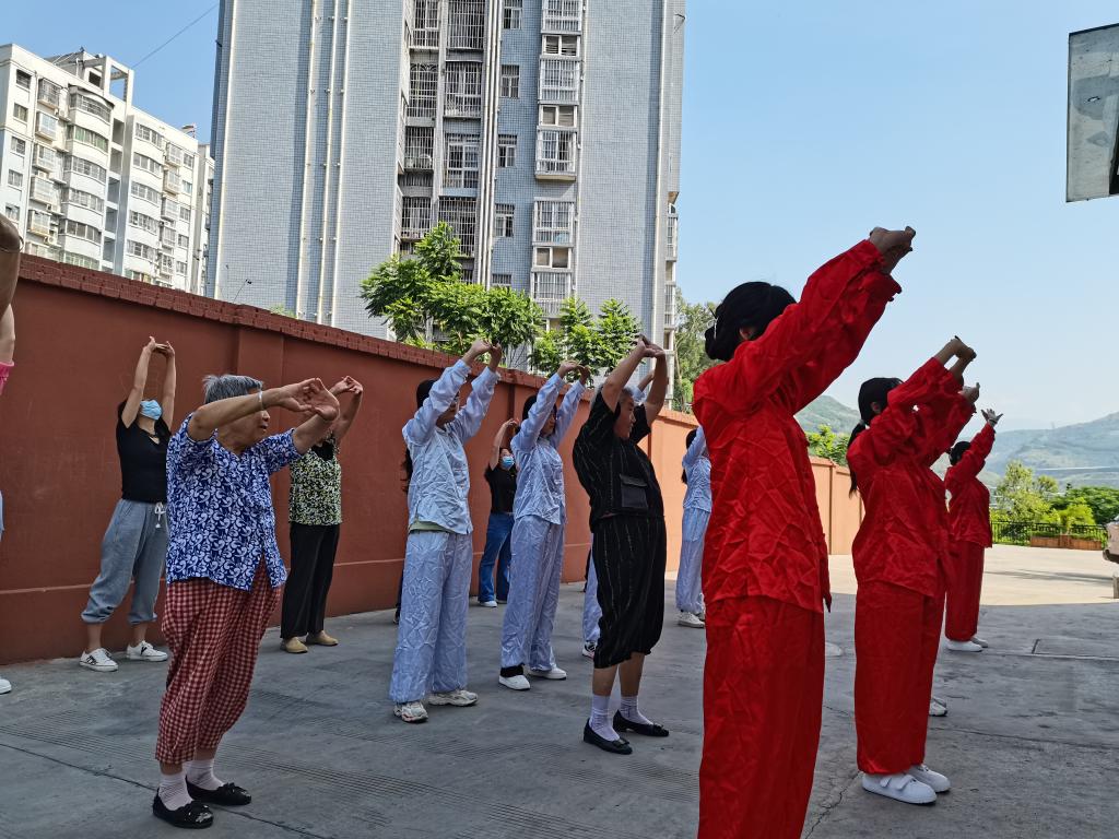 康养学院学生暑期社会实践志愿者现场为社区居民提供测量血压、抚触按摩、心肺复苏操作、艾灸理疗、健康宣教等服务。学生们还在现场展演“八段锦”,带动居民积极参与,增强大家养生意识。现场一位老大爷感慨的说:“我活了七十多年了,还是第一次感受这些服务,感谢党,感谢政府,感谢康养学院带来这么贴心的服务”。