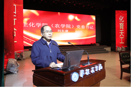 10月10日,生化学院(农学院)党政负责人在学生会堂举行的2022级新生开学典礼上,带头讲授新生入学教育思政第一课。