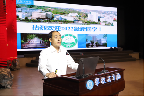 朱学军以两获国家自然科学基金博士刘昌庚,四川“天府峨眉计划”创业领军人才李健,首个离岗转化博士舒明勇,三博士团队等为例,就学院师资优势、科研平台、产教融合、实践平台、考研率、学科竞赛等办学条件和育人成效进行了详细阐述,学生现场反响热烈。他寄语新生要尽快转换角色、主动设计好学习规划,为完成学业开好头,最终破茧成蝶。