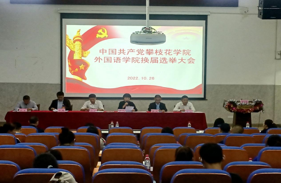 10月26日,中共攀枝花学院外国语学院委员会换届选举大会顺利召开,大会选举产生了学院新一届党的委员会和纪律检查委员会,学院63名党员参加会议,4名民主党派、无党派教师代表列席会议。