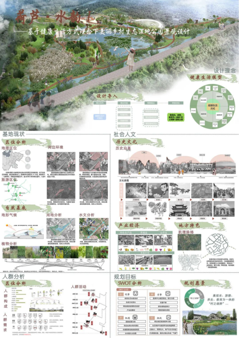 大赛围绕“乡约未来·美丽仙海”主题展开,以乡村人居环境规划建设、乡村产业发展、乡村治理、数字乡村等重点工作,引导大学生走进乡村、热爱乡村、研究乡村、规划设计乡村,用乡村梦实现青春梦,助力乡村振兴。土建学院师生团队在本次赛事中紧密结合乡村振兴重大决策的时事热点,在参赛作品中充分融入乡风文明、生态宜居的发展要求,对绵阳市仙海旅游景区的发展、定位、景观规划进行研究分析。