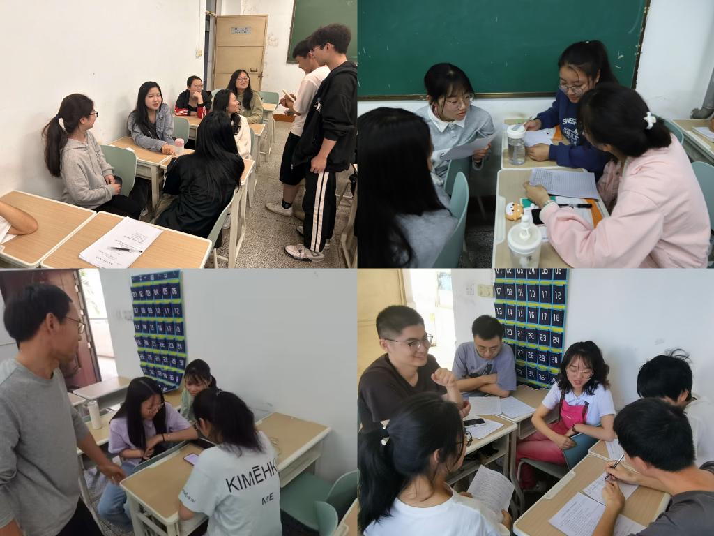 “为谁学、学什么、怎么学”,班长、团支书率先引出班会主题,各班级成员进行分组讨论。