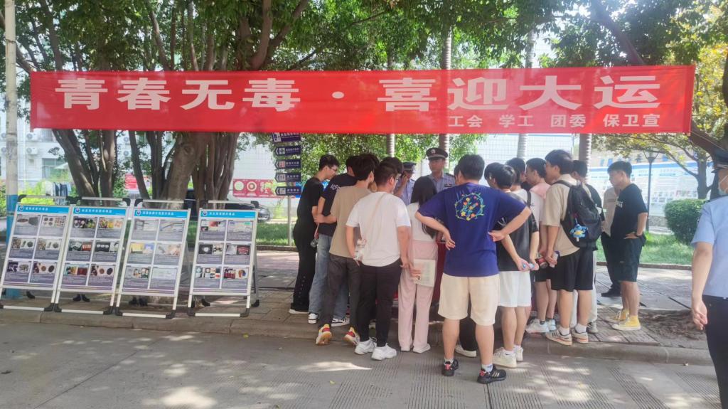 在第36个“6·26”国际禁毒日来临之际,为进一步提升全校师生识毒、防毒、拒毒能力,营造良好的校园禁毒氛围,6月16日,学生工作部、保卫部(处)、团委、工会联合攀枝花市东区禁毒办在学生公寓区开展了“青春无毒 喜迎大运”禁毒知识宣传教育活动。