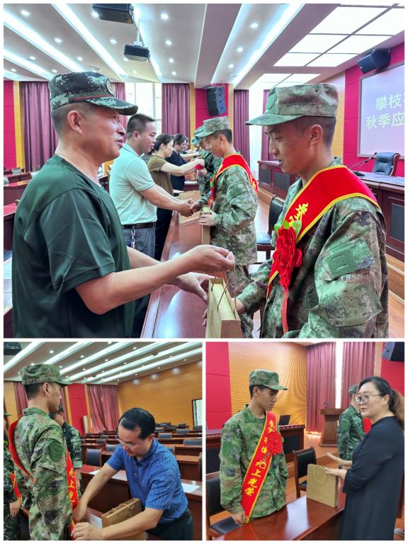 9月19日下午,学校组织二级学院分管学生工作领导和教师代表前往军分区欢送秋季参军入伍的8名青年学子。