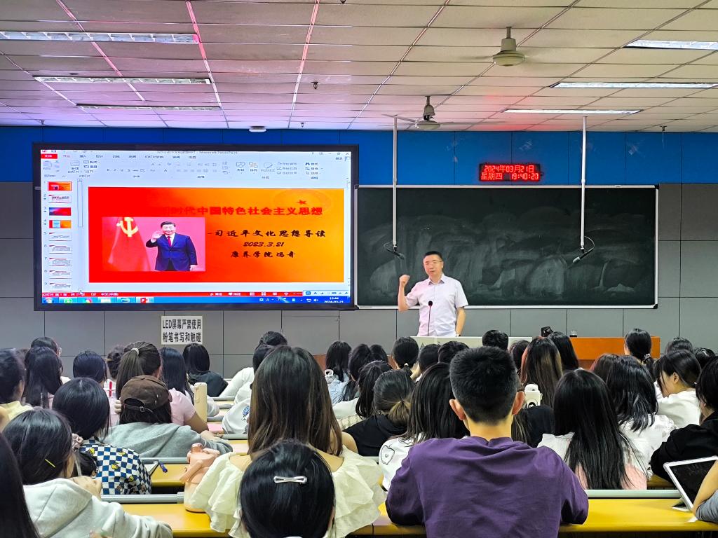 为深入学习贯彻习近平文化思想,培育和厚植爱国主义情怀,增强和坚定文化自信,树立和践行社会主义核心价值观,引领广大青年学生永远跟党走。3月21日晚,学校2024年《海归讲堂》在西苑笃行楼教室举行,康养学院副院长冯奇作了以“学习习近平文化思想,探源社会主义核心价值观”为主题的首场讲座,讲座由康养学院学生科负责人安文红主持。