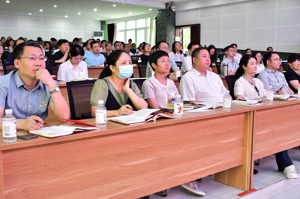 张清学以“深学纪律规矩,永葆教育初心,担当树人使命——再学《中国共产党纪律处分条例》”为题,简要回顾了《中国共产党纪律处分条例》历次修订情况,并就新《条例》的重点内容章节进行了分析解读。他表示,纪律严明是百年大党的光荣传统和独特优势,要坚决反对“低级红高级黑”,严守纪律“高压线”,并号召大家认真学习贯彻习近平总书记关于全面从严治党、党风廉政建设和反腐败斗争的重要论述。