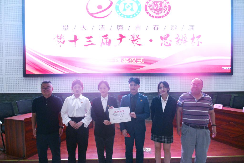 此次决赛共有4支队伍,分为两组,双方辩手分别围绕“廉洁文化重在知法于心vs廉洁文化重在守法于行”“反腐倡廉预防更有效vs反腐倡廉惩治更有效”展开辩论。在比赛过程中,双方辩手表现出缜密的逻辑思维、犀利的语言表达和默契的团队配合,经过两轮角逐,法学院的零零柒队荣获一等奖;基础医学院的代表队荣获二等奖;文学院的律政俏佳人队荣获三等奖;法学院2021级行政管理专业邹立春和基础医学院2022级临床医学专业陈相宇荣获本次比赛“最佳辩手奖”。