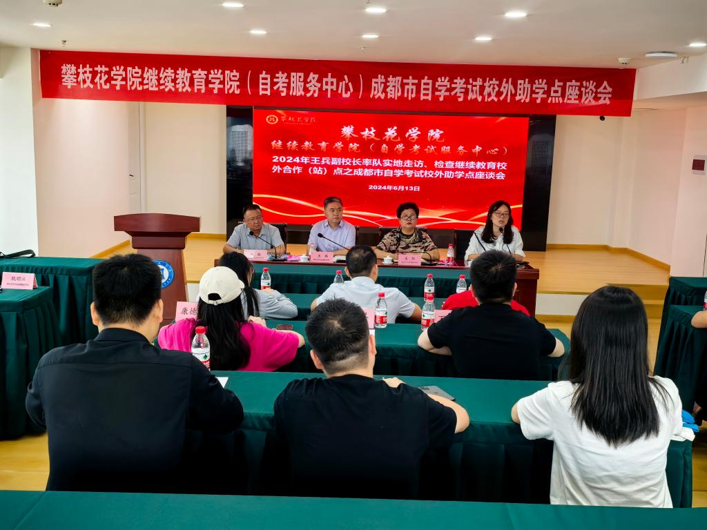 检查组一行分别对成人高等教育校外教学点四川省质量技术监督学校、眉山卫生职业学校、四川航天职业技术学院、高等教育自学考试校外助学点凉山州高等教育自考辅导站、西昌市优冠学培训学校、四川城市职业学院进行了现场调研。6月13日在成都集中召开了专题座谈会,与各助学点进行了深入交流,详细了解他们在学生管理和教学助学方面的经验与做法。阿坝职业学院、新安智技能培训学校、四川华夏专修学院等10家自学考试校外助学站点参加座谈。
