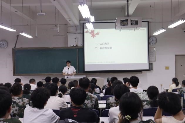 数计学院党委书记王明辉以《坚定人生目标担当复兴重任》为题,从为什么要有人生目标、如何树立人生目标、如何完成人生目标、高质量度过大学时光四个方面鼓励同学们在大学要有思考、有方向、有目标。