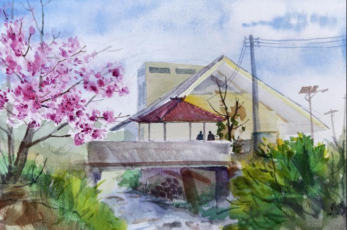 上午10点,副院长(主持工作)孙载斌教授、陶昌平教授和陈奉雷博士一行抵达仙山村,驻村书记曹慕岚对专家的到来表示热烈欢迎。随即,两位教授开始选点创作水彩写生作品,陈博士以《美丽仙山村》为主题开始创作风光摄影系列作品。专家们以饱满的热情发挥自己艺术特长,经过3个小时的写生创作,共为仙山村留下水彩写生作品2幅,摄影作品8幅,圆满完成了此次专家服务基层活动的目标任务。