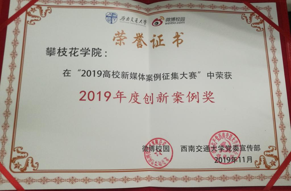 近日,我校传媒中心新媒体在2019高校新媒体案例征集大赛”中获“2019年度新媒体创新案例奖”。