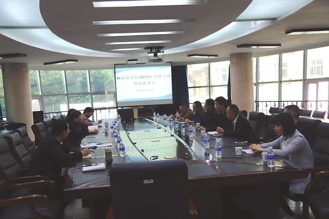 2月20日上午,我校在办公楼三楼会议室召开2019年宣传工作咨询座谈会。市外宣中心、攀枝花日报、攀枝花广播电视台、GOGO攀枝花、人民网四川频道相关领导、专家,学校党委宣传统战部全体成员参加会议。与会人员重点围绕我校2019年宣传工作进行了座谈交流。座谈会由学校党委宣传统战部副部长肖国玉主持。