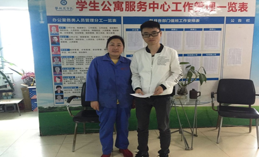 3月1日,学生公寓10号楼管理员吴华群在打扫楼栋卫生时,拾到一个钱包,内有现金3121.2元,吴华群把钱包交到了公寓中心办公室,贴出招领启事,后该钱包被失主领取,并送来感谢信。