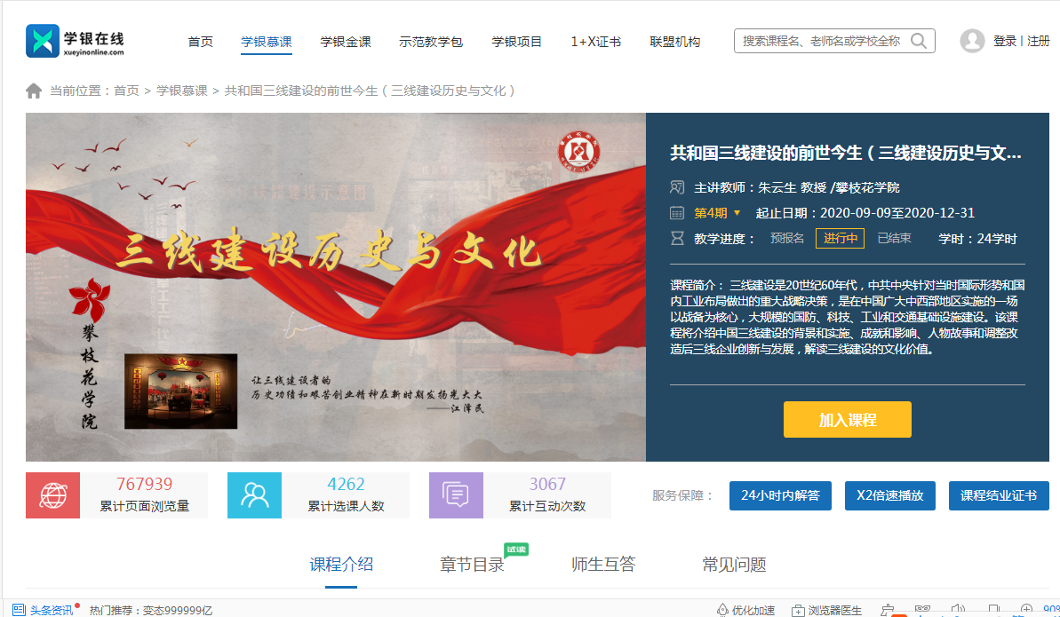 攀枝花学院以传承弘扬三线精神为己任,发挥社会主义先进文化的价值引领和人格塑造作用,积极探索将三线精神文化融入学校思想政治工作,开创具有地方特色的思想政治教育新渠道,引领广大师生再赴新时代西部大开发国家战略。学校组建了教学科研团队,成立专门的研究机构,聚焦三线建设历史文化的教学与研究。目前学院团队申报省部级以上课题6个,出版《三线建设历史与文化》《战成昆》等著作5部,发表论文30多篇。学校建成了全国第一门以三线建设为主要内容的网络慕课“共和国三线建设的前世今生”,成功开发了“传承红色基因——三线建设艰苦创业体验式教学”虚拟仿真实验项目,全省十多所高校、近万名学生选修了相关课程。