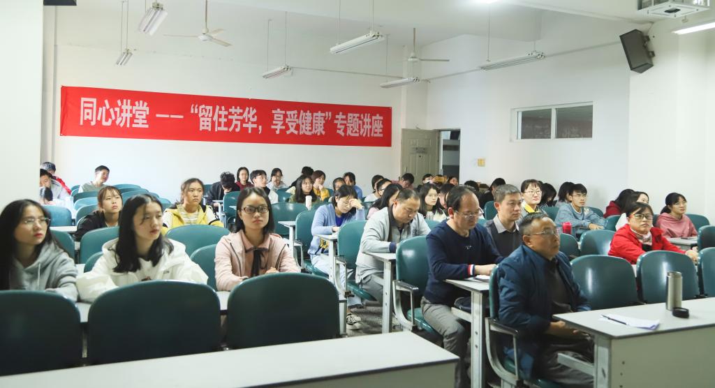 11月4日下午,陈式太极拳温县非物质文化遗产传承人张富香老师应邀来校,在2-404教室举行“留住芳华,享受健康”健康养生专题讲座。学校师生50余人听取了讲座。