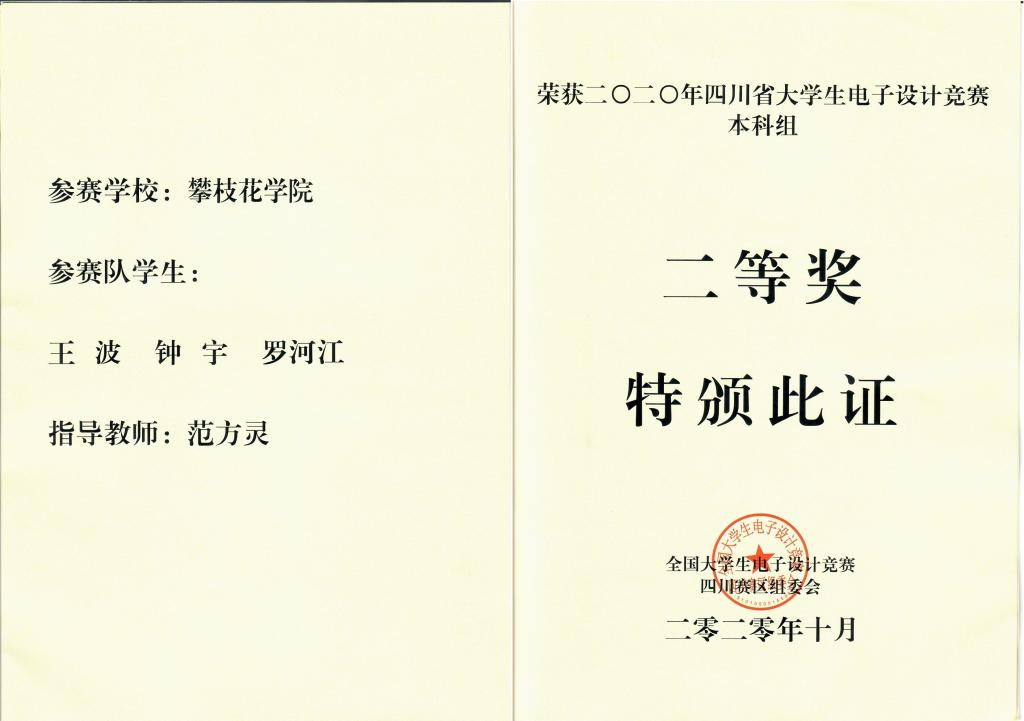 近日,我校参赛学子经过43夜的努力拼搏,在2020年四川省大学生电子设计竞赛(TI杯)中,喜获省级本科组二等奖的好成绩。