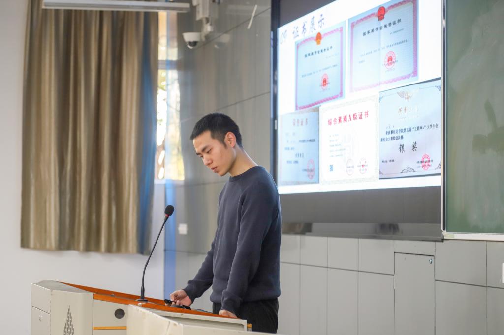土建学院17级土木工程专业温淞琳曾参与“疫情防控”、“赛会服务”、“关爱儿童”等多个领域,志愿服务时长达500余小时。他以“克己以正身,宽心以助人”为题,分享了各种志愿活动中的温情和敬意、所见所得所感以及雷锋精神的力量与内涵。