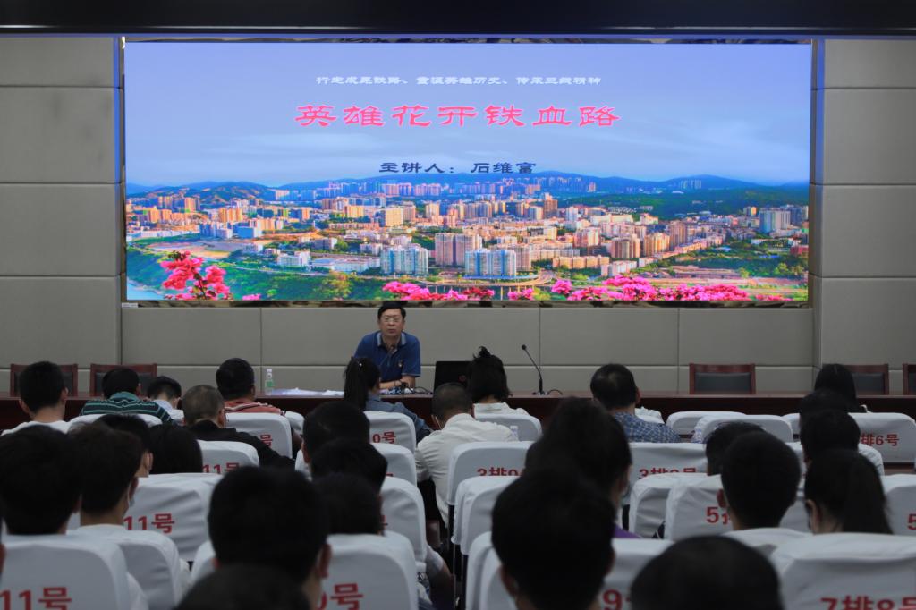 3月31日下午,副校长石维富在我校纪检监察学院培训教室为党委行政办公室、科研处、钒钛学院、数计学院师生党员开展“英雄花开铁血路”专题党课,校党委书记王斌出席本次党课。