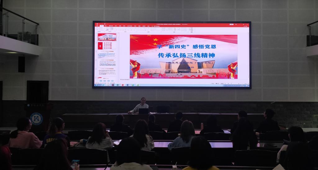 讲座围绕“学习党史感悟党恩“为什么学、学什么、如何学“三线建设回顾、杰出成就、典型事迹”“传承弘扬三线精神做自律攀大人”四个方面展开。