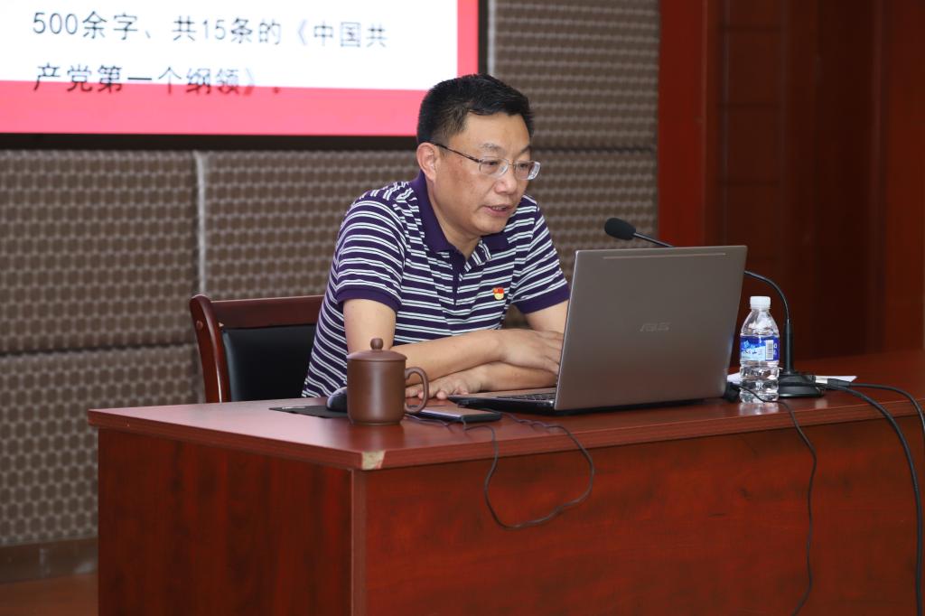 刘立新分别从新民主革命时期党章的创制与修改、建国后党章的创制与修改、新时期党章的创制与修改进行讲解。结合历史背景和数据,对中共一大到中共十九大党章的修改重点进行了详细阐述。他希望全体党员必须学习党章,遵守党章,贯彻党章,维护党章,牢固树立党章意识。在现实生活中,对执行党章有高度的责任心和自觉性,能经常对照党章规范自己的言行,努力把党章内化于心、外化于行。
