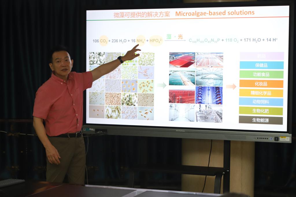 胡强向参会人员介绍了经济微藻产业及应用发展概况,表示微藻是未来一个重要的新型产业,对我国的绿色发展、高质量发展有极大的作用,强调藻类功能的多样性能够有效地满足能源资源不足的情况,将在生物化肥、化妆品产业等产业发挥不可忽视的作用,微藻产业对中国碳达峰、碳中和及绿色低碳发展可能的巨大贡献。